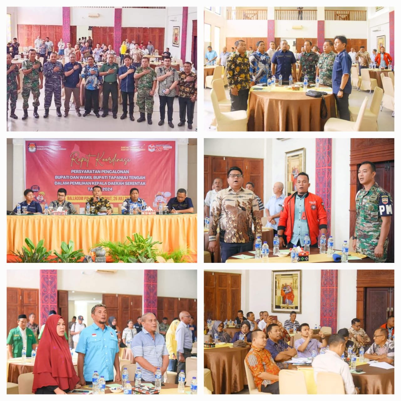 Pj Bupati Kabupaten Tapanuli Tengah Dr. Sugeng Riyanta, SH, MH diwakili oleh Kepala Bappeda Tapteng Anton Sujarwo, S. STP, menghadiri kegiatan sekaligus menjadi Narasumber pada Rapat Koordinasi Persyaratan Pencalonan Bupati dan Wakil Bupati Pada Pemilihan Kepala Daerah (Pilkada) Serentak Tahun 2024, yang dilaksanakan di Ballroom PIA Hotel Pandan, pada Jum’at (26/07/2024).