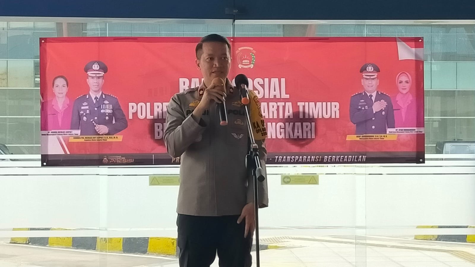Kapolsek Cakung menyampaikan sambutannya, menekankan pentingnya sinergitas antara TNI, Polri, Dishub, dan instansi lainnya dalam menjaga keamanan dan kenyamanan masyarakat.