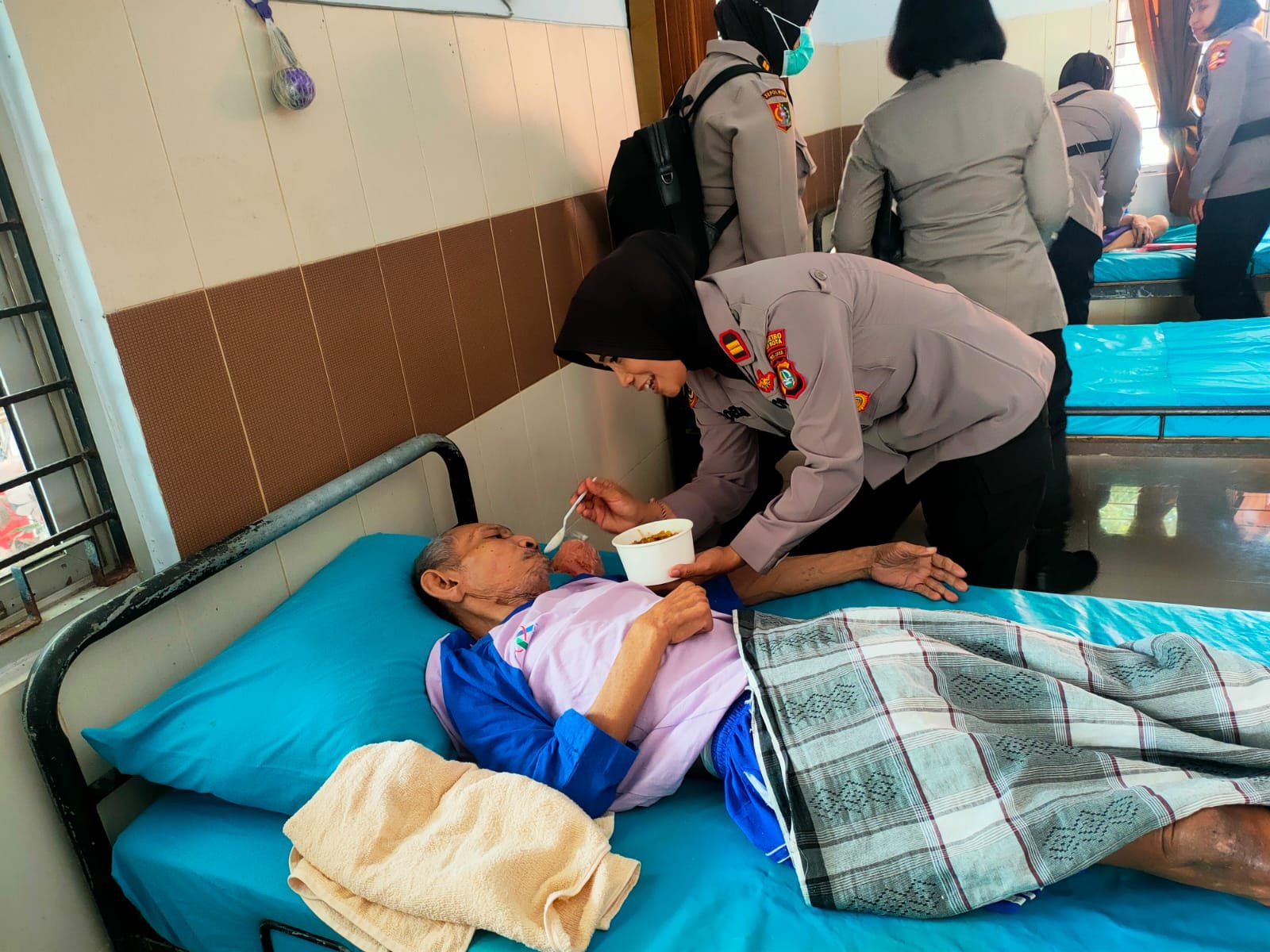 Pada kesempatan lain, nampak Polwan tidak malu untuk menyuapi seorang pasien yang sakit membutuhkan bantuan, membantu menyeberangi jalan, memeluk erat seorang ibu yang nampak sedih.