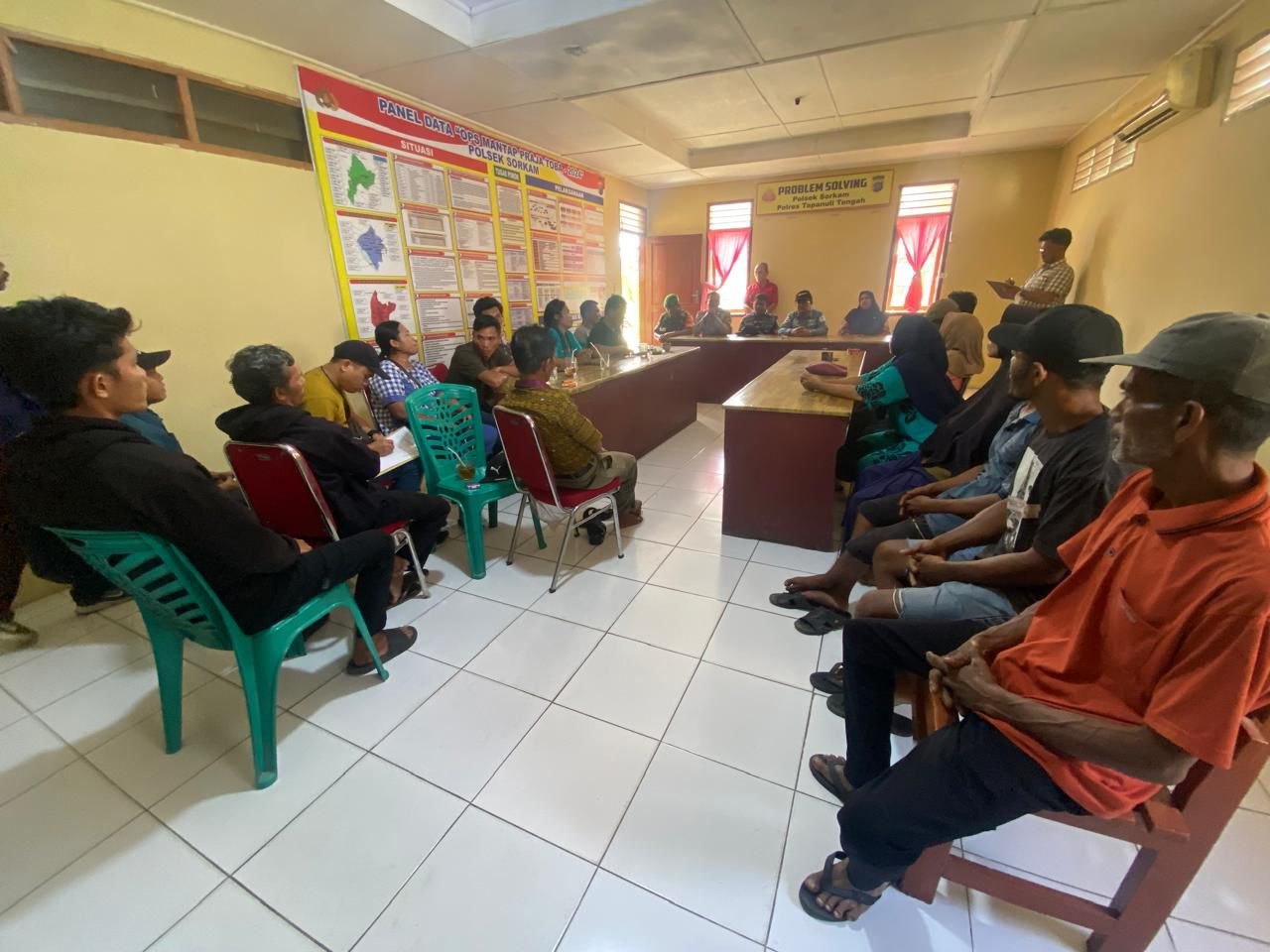 Kegiatan mediasi berlangsung di Aula Polsek Sorkam pada Senin, 18 Agustus 2025, pukul 14.30 WIB. Proses ini dipimpin oleh Kanit Binmas Polsek Sorkam, Aiptu Indra Gunawan.