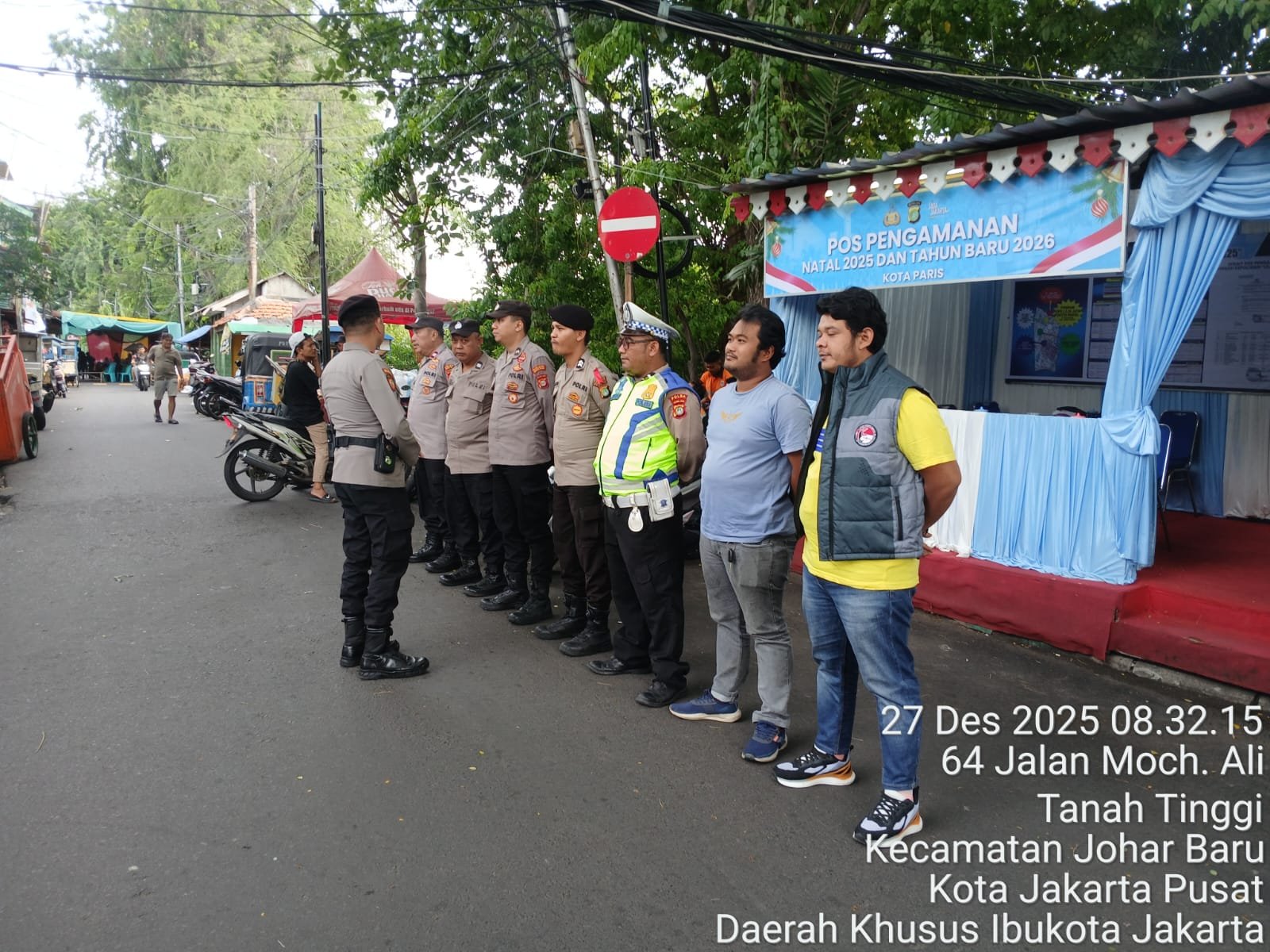 Jakarta Pusat – Dalam rangka memastikan kesiapan pengamanan perayaan Natal 2025 dan Tahun Baru 2026, Polsek Johar Baru menggelar apel dan arahan pimpinan (APP) personel Pos Pengamanan (Pospam) Kota Paris, Johar Baru, Jakarta Pusat, pada Sabtu (27/12/2025) pukul 08.15 WIB.