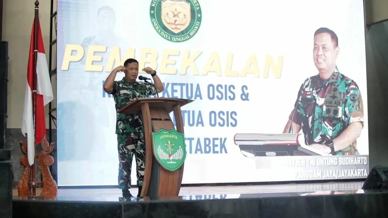 Kodam Jaya_Cililitan, Jakarta Timur. Guna mengenal lebih dekat tentang Kodam Jaya, pagi ini Pangdam Jaya/Jayakarta Mayjen TNI Untung Budiharto menerima kunjungan dan berikan pembekalan kepada Ketua dan Wakil Ketua Organisasi Siswa Intra Sekolah (OSIS) yang berkunjung ke Kodam Jaya, bertempat di Aula Sudirman, Makodam Jaya, Cililitan, Jakarta Timur. Rabu (11/1/2023).