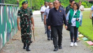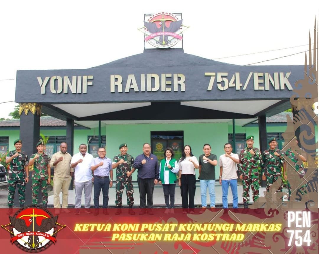 Timika – Ketua KONI Pusat Letjen TNI (Purn) Marciano Norman bersama rombongan melaksanakan kunjungan ke Markas Batalyon Infanteri 754/ENK yang berada di Timika, Papua Tengah, Selasa (23/02/24).