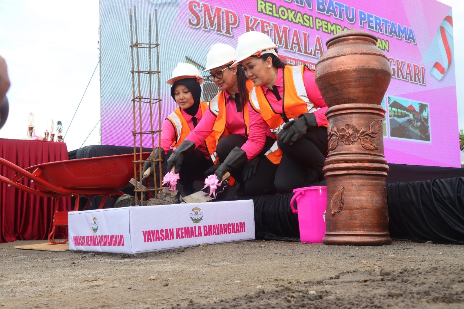 Prosesi ini turut dihadiri oleh sejumlah pejabat penting, di antaranya Ketua Bhayangkari Daerah Jawa Tengah, Ny. Diana Ribut H. Wibowo, Ketua Bhayangkari Cabang Karanganyar, Ny. Dian Hadi Kristanto, serta perwakilan BBPMP Jawa Tengah, Ibu Sri Hartati, S.Pd, M.Pd. Hadir pula Kapolda Jawa Tengah dan Forkopimda Kabupaten Karanganyar yang memberikan dukungan atas pembangunan sekolah tersebut.