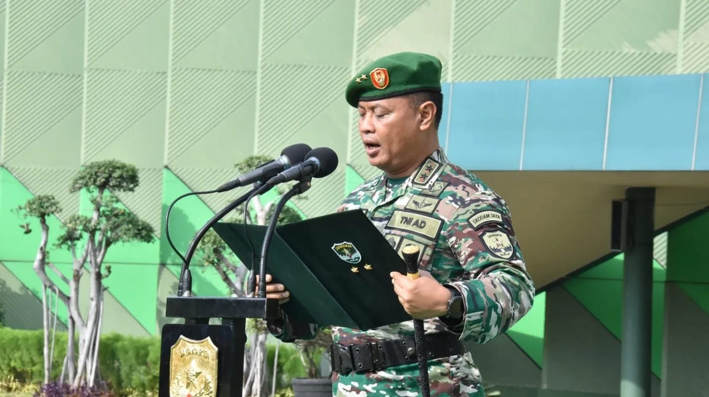 Pangdam Jaya Mayjen TNI Untung Budiharto pimpin upacara peringatan Hari Juang Kartika TNI AD ke-77 Tahun 2022, di Lapangan Jayakarta Makodam Jaya Cililitan, Jakarta Timur. Kamis (15/12/2022).