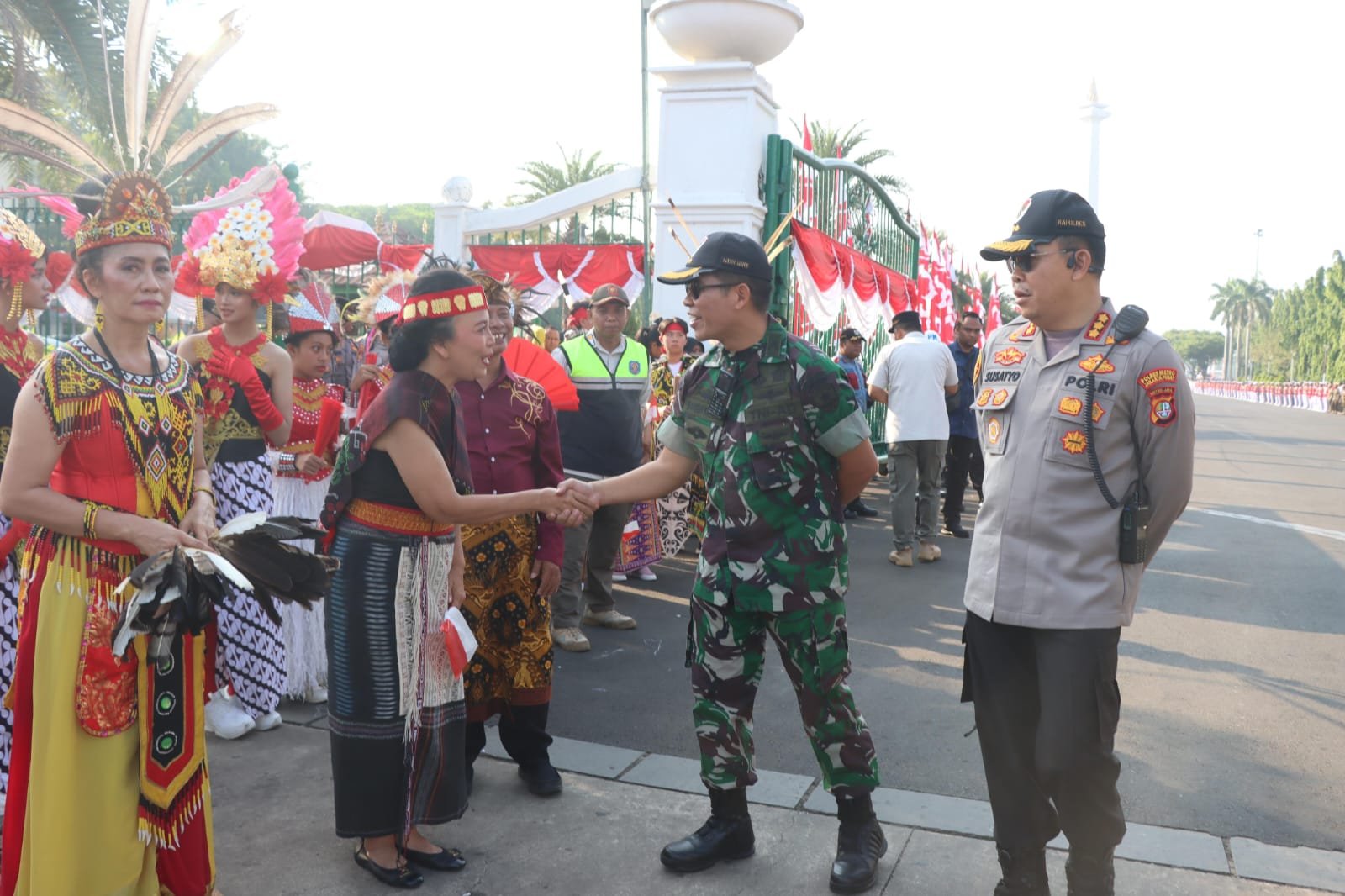 refubliknews.com, – Jakarta Pusat_Dandim 0501/JP Kolonel Bangun I.E. Siregar, S.H., MIPOL bersama Kapolres Metro Jakarta Pusat Kombes Pol Susatyo Purnomo Condro,S.H.,S.I.K.,M.SI. laksanakan pengamanan Prosesi Kirab Bendera Pusaka Merah Putih dan Teks Naskah Proklamasi, yang dipindahkan dari Monas Ke Ibu Kota Nusantara (IKN) bertempat di Jalan Lapangan Monas, Gambir, Kecamatan Gambir, Jakarta Pusat. Sabtu (10/8/2024).