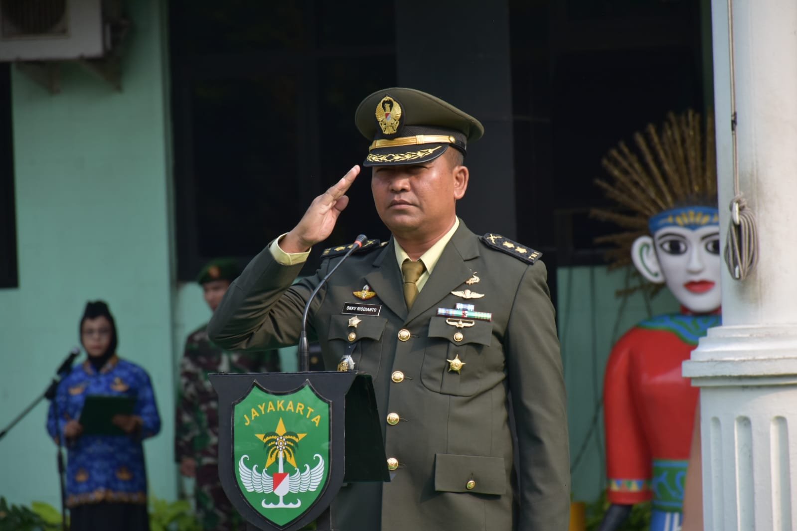 Hadir sebagai Inspektur Upacara Letkol Inf Okky Risdianto, S.I.P Kepala Staf Kodim 0501/JP, Kapten Inf Amin sebagai Perwira upacara diikuti oleh seluruh Perwira staf, Danramil 01/Menteng sampai dengan 08/Johar Baru dan anggota serta PNS Kodim 0501/JP.