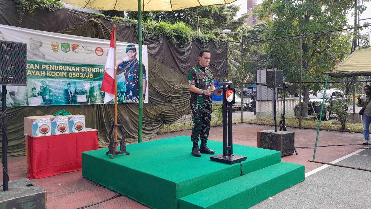 Dalam sambutan Komandan Korem 052/Wkr Brigjen TNI Putranto Gatot SH, S.Sos., M.M yang dibacakan Dandim 0503/JB Letkol Inf ES. Putra Siregar S.I.P mengatakan komitmen pemerintah saat ini adalah menempatkan stunting sebagai musuh yang harus dikalahkan. Stunting ini efeknya tidak hanya sekarang, tetapi dalam jangka panjang, seperti menghambat pertumbuhan syaraf, kognitif, motorik, bahasa, resiko obesitas, gangguan psikis, reproduksi dan produktivitas. Seperti yang kita semua tahu bahwa permasalahan stunting merupakan prioritas nasional.
