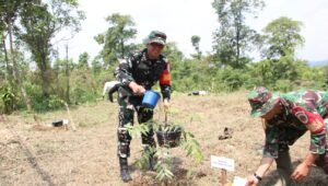 Sebagai wujud kepedulian terhadap ekosistem, Satgas TMMD melakukan aksi penanaman 1.000 bibit pohon di sepanjang area kegiatan. Langkah ini diambil sebagai upaya preventif terhadap erosi sekaligus menciptakan lingkungan desa yang lebih hijau dan berkelanjutan.