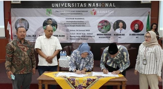 Kegiatan kolaborasi Bawaslu Provinsi DKI Jakarta dan Universitas Nasional turut dilaksanakan penandatanganan MoA dan IA Fisip Universitas Nasional dengan Bawaslu Provinsi DKI Jakarta.