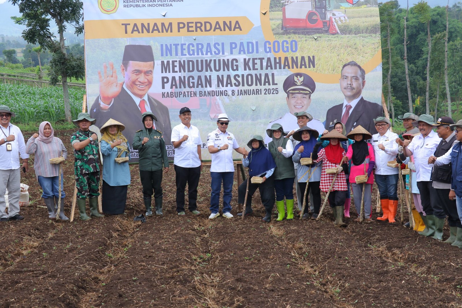 “Kabupaten Bandung siap mengawal dan mendukung program ketahanan pangan nasional yang digagas Pak Prabowo,” ujar Bupati Dadang Supriatna saat melakukan penanaman padi gogo.