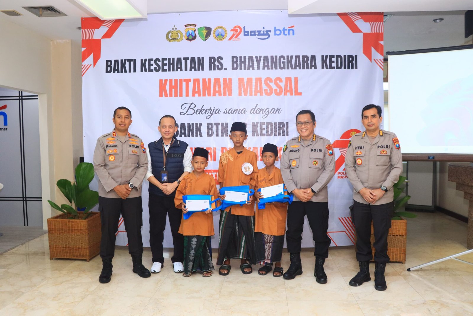 “Khitanan massal ini merupakan kepedulian dan kebersamaan Polri dan Instansi Perbankan dalam hal ini Bank BTN KC Kediri dalam membantu program kesehatan yang ada di seluruh lapisan masyarakat, khususnya wilayah Kota Kota Kediri,” kata AKBP Bramastyo Priaji.