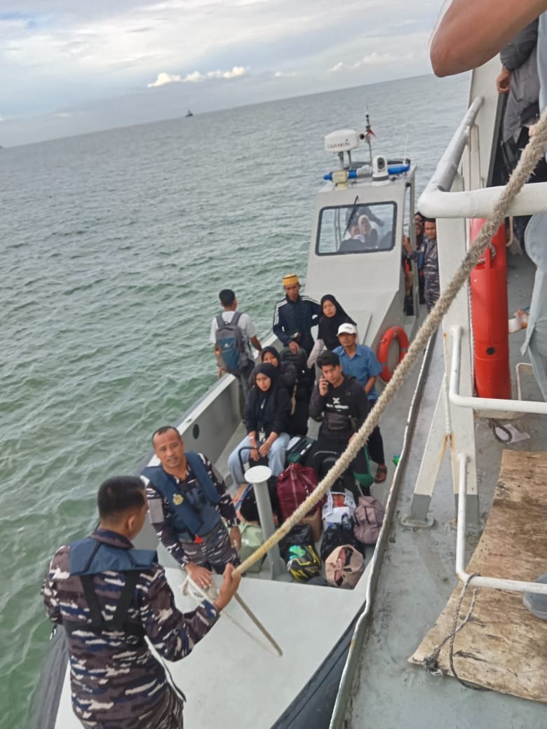 Proses debarkasi melibatkan personel Lanal Bengkulu dan Bakamla RI dengan menggunakan Dua unit Rigid Inflatable Boat (RIB) dari KN Pulau Marore-322 dan satu unit Rigid Bouyancy Boat (RBB) dari Lanal Bengkulu untuk membawa para penumpang ke dermaga. Total 118 warga berhasil dievakuasi, terdiri dari 66 mahasiswa dan 52 masyarakat umum, termasuk 2 orang wanita dalam kondisi sakit dan 4 orang anak-anak menggunakan mobil Ambulance milik Balai Pengobatan Lanal Bengkulu.