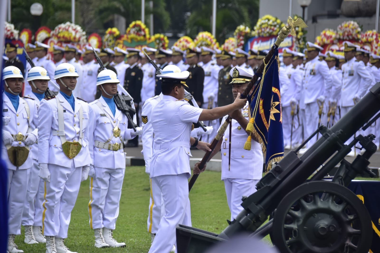 Jakarta Komandan Korps Marinir (Dankormar) Mayor Jenderal TNI (Mar) Endi Supardi, S.E., M.M., M.Tr.Opsla., CHRMP., CRMP., didampingi Ketua Gabungan Jalasenastri Korps Marinir Ny. Nana Endi Supardi menghadiri Upacara Serah Terima Jabatan (Sertijab) Komandan Sekolah Staf dan Komando TNI Angkatan Laut (Danseskoal) bertempat di Lapangan Laut Jawa Seskoal, Cipulir Kebayoran Lama, Jakarta Selatan, Rabu Sore (27/03/2024).