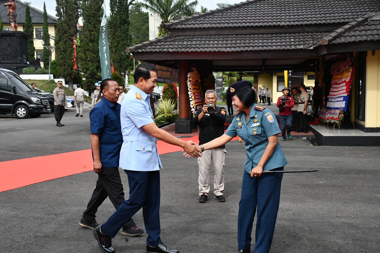 TNI AL, Bandung,- Komandan Lanal Bandung Kolonel Laut (KH/W) Dr. Renny Setiowati, S.T., M.Sc., M.Tr.Hanla., mendampingi Wakil Kepala Staf Angkatan Laut (Wakasal) Laksamana Madya TNI Erwin S. Aldedharma menghadiri Upacara Pembukaan Pendidikan Sekolah Staf Pimpinan Tinggi (Sespimti) Polri Pendidikan Reguler (Dikreg) Angkatan 33 Tahun Anggaran 2024 dan Sekolah Staf Pimpinan Menengah (Sespimmen) Polri Pendidikan Reguler (Dikreg) Angkatan 64 Tahun Anggaran 2024 yang dipimpin langsung oleh Wakil Kepala Kepolisian Negara RI (Wakapolri) Komisaris Jenderal Pol Drs. Agus Andrianto, S.H., M.H., bertempat di Sespim Lemdiklat Polri, Lembang, Kabupaten Bandung Barat, Rabu (17/01/2024).