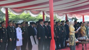 TNI AL, Bandung,- Komandan Pangkalan TNI Angkatan Laut (Danlanal) Bandung Kolonel Laut (KH/W) Dr. Renny Setiowati., S.T., M.Sc., M.Tr.Hanla., beserta Forkopimda Provinsi Jawa Barat menghadiri Upacara Peringatan Hari Kesaktian Pancasila Tingkat Provinsi Jawa Barat, bertindak sebagai Pembina Upacara PJ. Gubernur Provinsi Jawa Barat Bey Mahmudin, bertempat di Lapangan Gasibu, Jalan Diponegoro, Kota Bandung, Minggu (01/10/2023).
