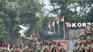 TNI AL, Bandung,- Komandan Lanal Bandung Kolonel Laut (KH/W) Dr. Renny Setiowati. S.T., M.Sc., M.Tr.Hanla., menghadiri Upacara Serah Terima Jabatan (Sertijab) Komandan Korps Marinir (Dankormar) dari Letjen TNI (Mar) Nur Alamsyah, S.E., M.M., M.Tr.(Han)., kepada Mayjen TNI (Mar) Endi Supardi, S.E., M.M., M.Tr.Opsla., CRMP., serta Upacara Parade dan Defile HUT Ke-78 Korps Marinir Tahun 2023 yang dipimpin Kepala Staf Angkatan Laut (Kasal) Laksamana TNI Muhammad Ali, S.E., M.M., M.Tr.Opsla., bertempat di Lapangan Apel Brigif 1 Marinir, Jalan Raya Cilandak KKO, Jakarta Selatan, Rabu (15/11/2023).