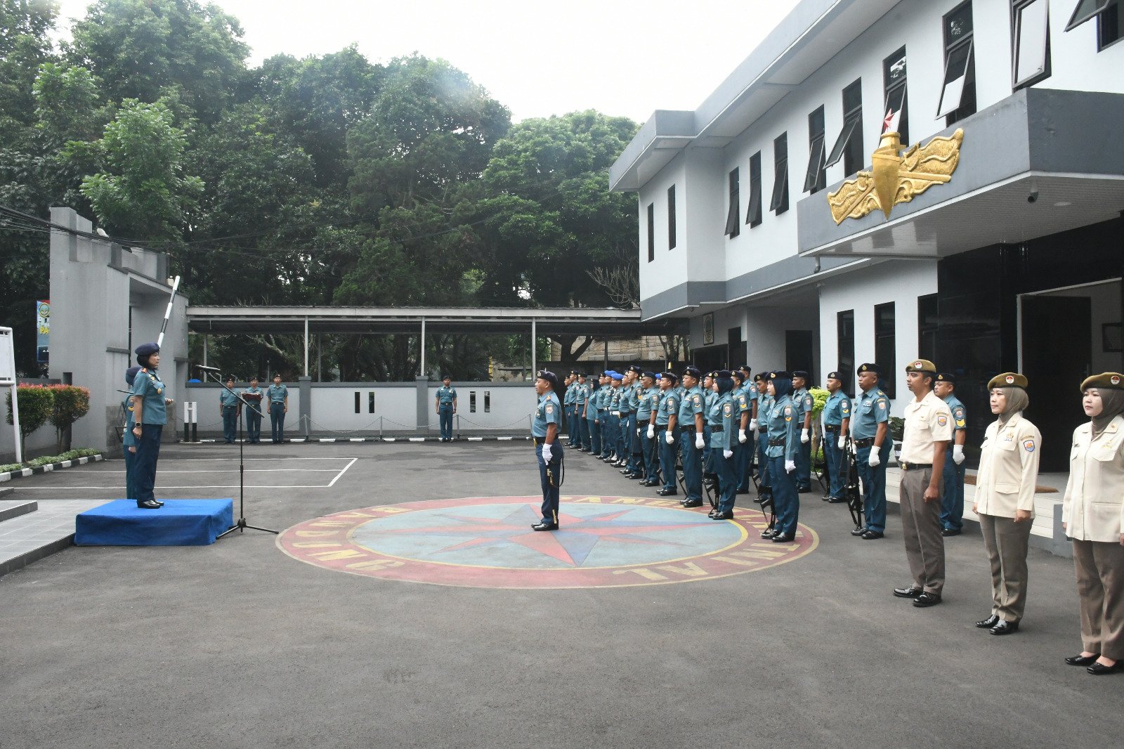 TNI AL, Bandung,- Komandan Pangkalan TNI Angkatan Laut (Danlanal) Bandung Kolonel Laut (KH/W) Dr. Renny Setiowati, S.T., M.Sc., M.Tr.Hanla., memimpin Upacara Bendera