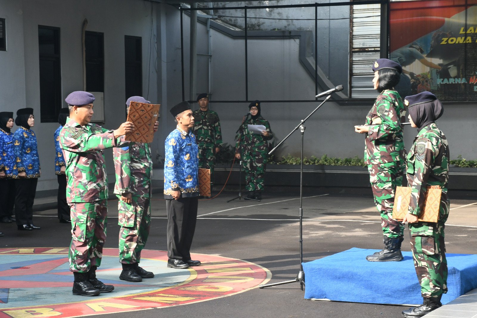 TNI AL, Bandung,– Komandan Pangkalan TNI Angkatan Laut (Lanal) Bandung Kolonel Laut (KH/W) Dr. Renny Setiowati, S.T., M.Sc., M.Tr.Hanla., memimpin Upacara Bendera Tujuh Belasan di Lapangan Apel Markas Komando (Mako) Lanal Bandung, Jalan Aria Jipang No. 8 Kota Bandung, Senin (17/04/2023).