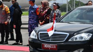 TNI AL, Bandung,- Komandan Lanal Bandung Kolonel Laut (KH/W) Dr. Renny Setiowati, S.T., M.Sc., M.Tr.Hanla., bersama Unsur Forkopimda Provinsi Jawa Barat menyambut kedatangan Presiden RI H. Joko Widodo beserta Ibu Hj. Iriana Joko Widodo dalam rangka melaksanakan kunjungan kerja ke Bandung dan Kabupaten Bandung, Provinsi Jawa Barat, bertempat di Pangkalan Udara Husein Sastranegara Bandung, Sabtu (03/02/2024).