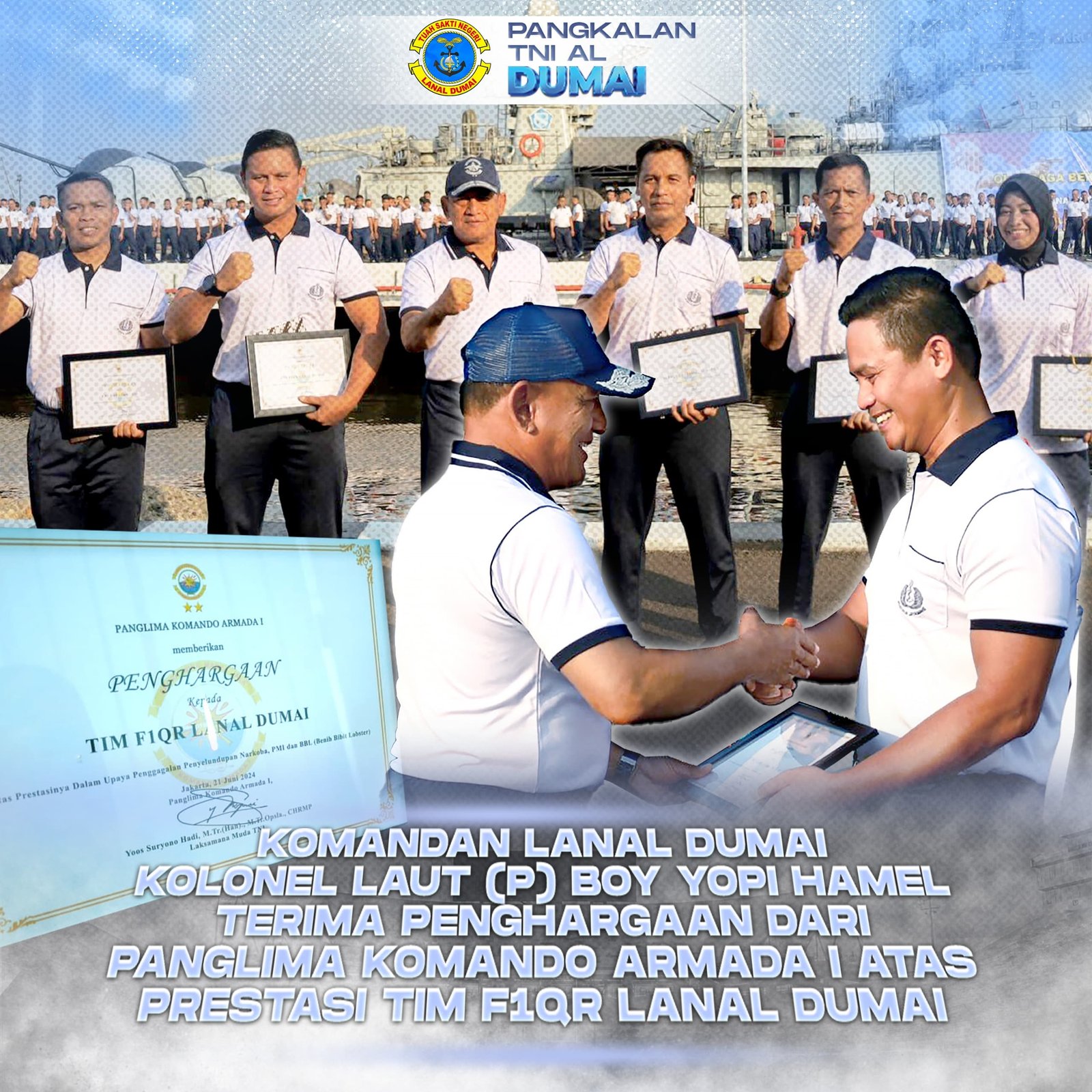 Penghargaan yang diberikan kepada Tim F1QR Lanal Dumai merupakan salah satu bentuk apresiasi dari Pimpinan TNI AL terhadap Lanal Dumai dalam hal ini Tim F1QR yang telah berhasil menggagalkan upaya penyelundupan Narkoba, PMI (Pekerja Migran Ilegal)dan BBL (Benih Bibit Lobster) di wilayah kerja Lanal Dumai. Bravo Zulu Lanal Dumai.