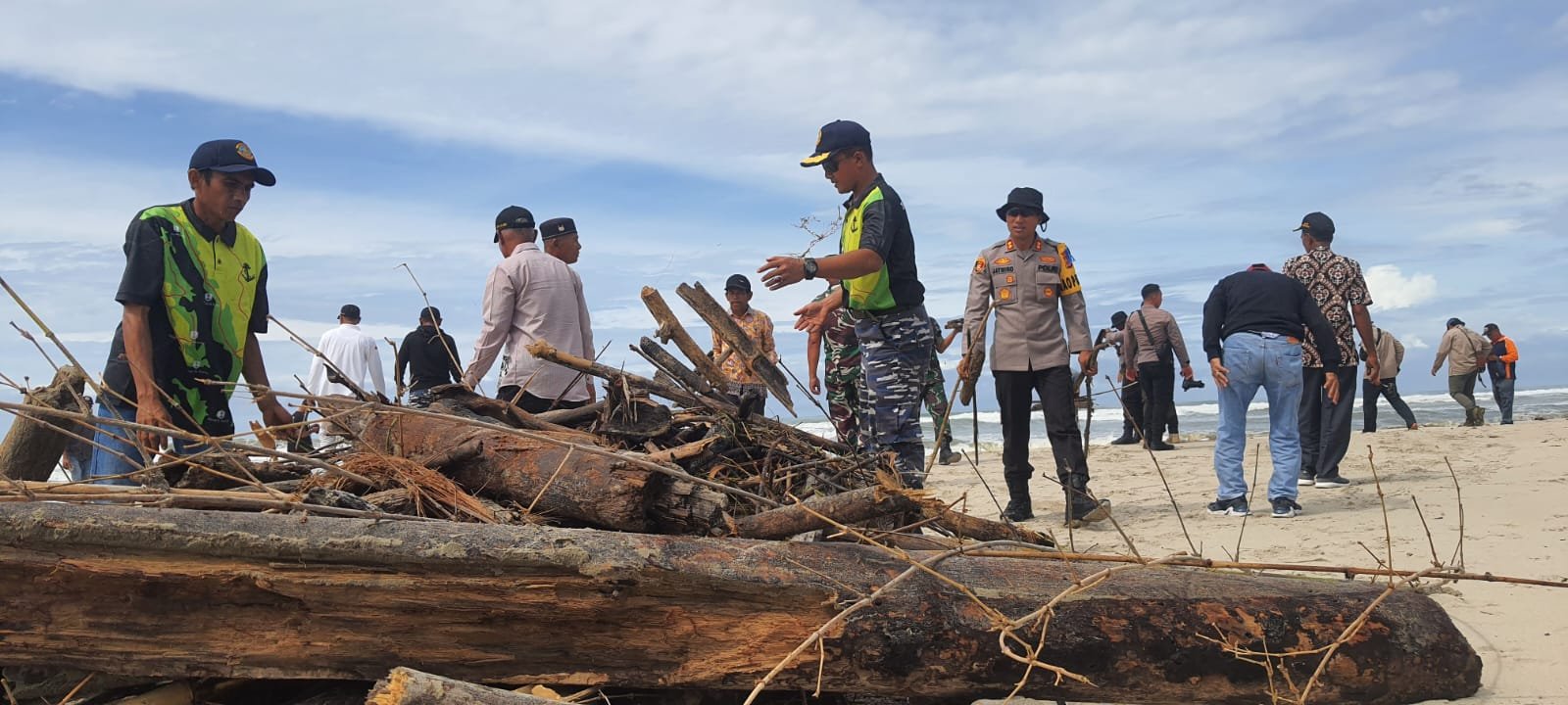 Bersama Personel TNI-Polri dan Relawan Konservasi Penyu serta Komponen Masyarakat melaksanakan bersih-bersih Pantai Along, Kecamatan Salang, Kabupaten Simeulue, Aceh, Minggu (12/02/2023).