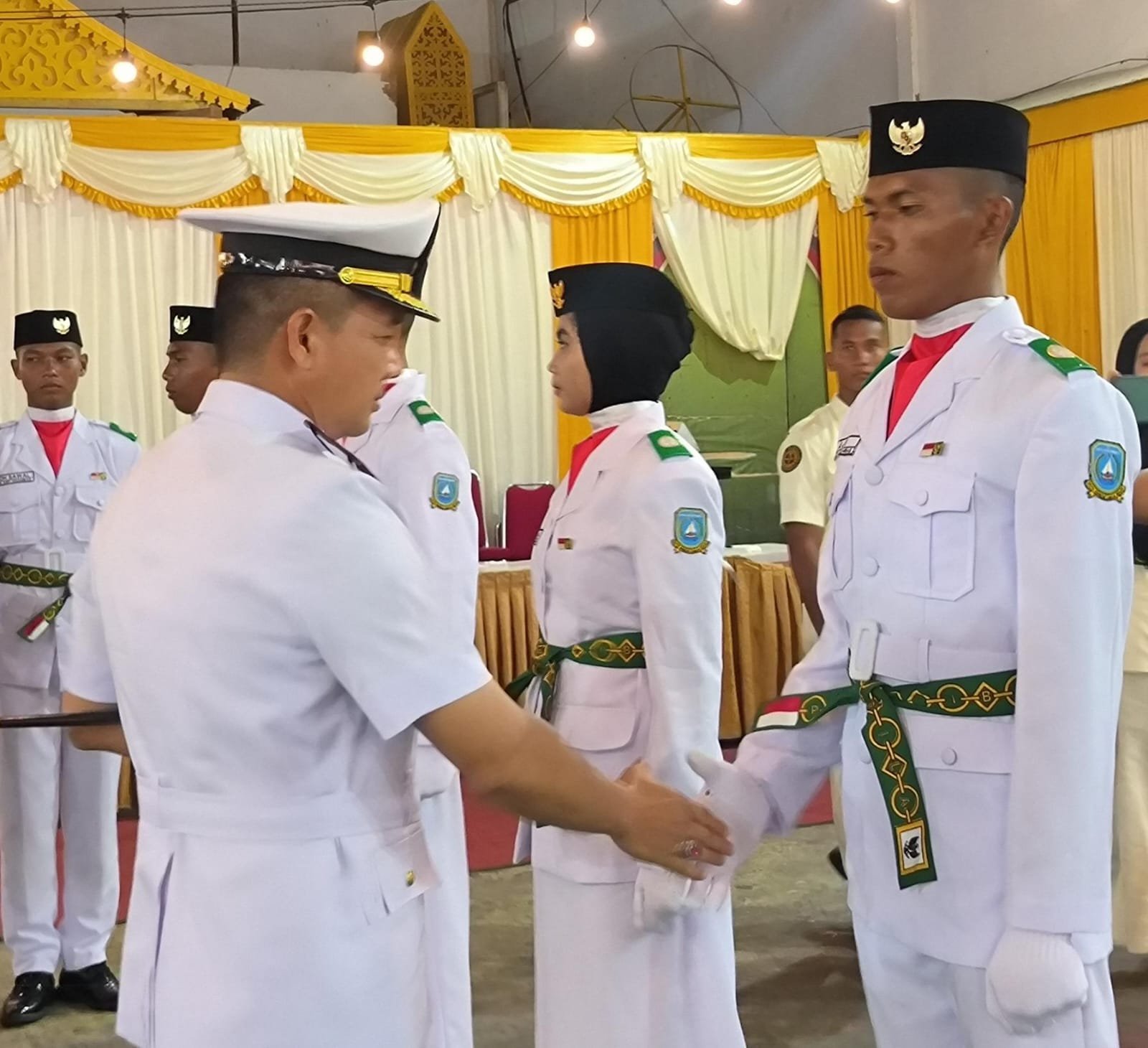 refubliknews.com, – TNI AL, Kepulauan Anambas,- Komandan Lanal Tarempa Letkol Laut (P) Ari Sukmana, S.E., M.Tr. Opsla., menghadiri Upacara Pengukuhan Pengibar Bendera Tingkat Kabupaten Kepulauan Anambas 2024 yang dipimpin oleh Wakil Bupati Kabupaten Kepulauan Anambas yang akan bertugas dalam pengibaran dan penurunan bendera pada saat Upacara 17 Agustus 2024 yang mengusung tema “Nusantara Baru, Indonesia Maju”, bertempat di Lapangan Bola Sulaiman Abdullah Tarempa, Kecamatan Siantan, Kabupaten Kepulauan Anambas, Kamis (15/08/2024).