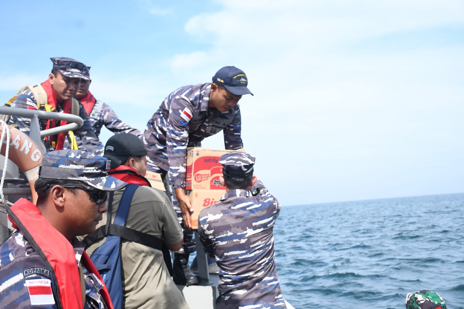 Usai berikan motivasi kepada seluruh personel Satgas, Danlanal TBA memberikan paket sembako dan diterima langsung oleh Kolak Ops I Pos Pulau Berhala Lettu Mar Joko Santoso.