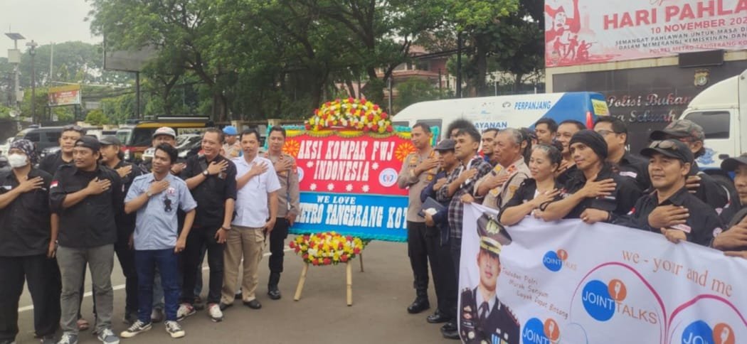 “Tadi perwakilan saja, dari DPP, DPD Banten, Korwil Tangerang Kota, Tangerang Selatan, Tangerang Kabupaten, Jakarta Barat, Jakarta Selatan, dan Jakarta Utara. Kita sepakat aksi kompak FWJ Indonesia we love Polres Metro Tangerang Kota. “Jelasnya.