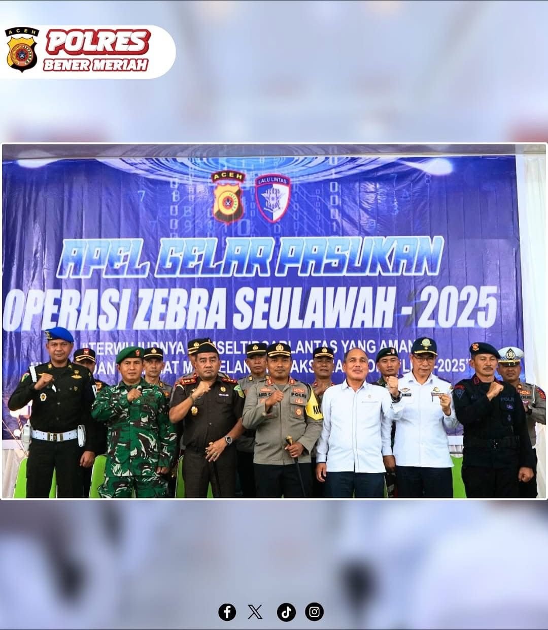 “Kepolisian Daerah Aceh bersama seluruh jajaran, dengan dukungan instansi terkait dan mitra kamtibmas, melaksanakan Operasi Kepolisian Terpusat dengan sandi Zebra Seulawah 2025. Operasi ini digelar selama 14 hari, mulai 17 hingga 30 November 2025,” ujar Kapolres.