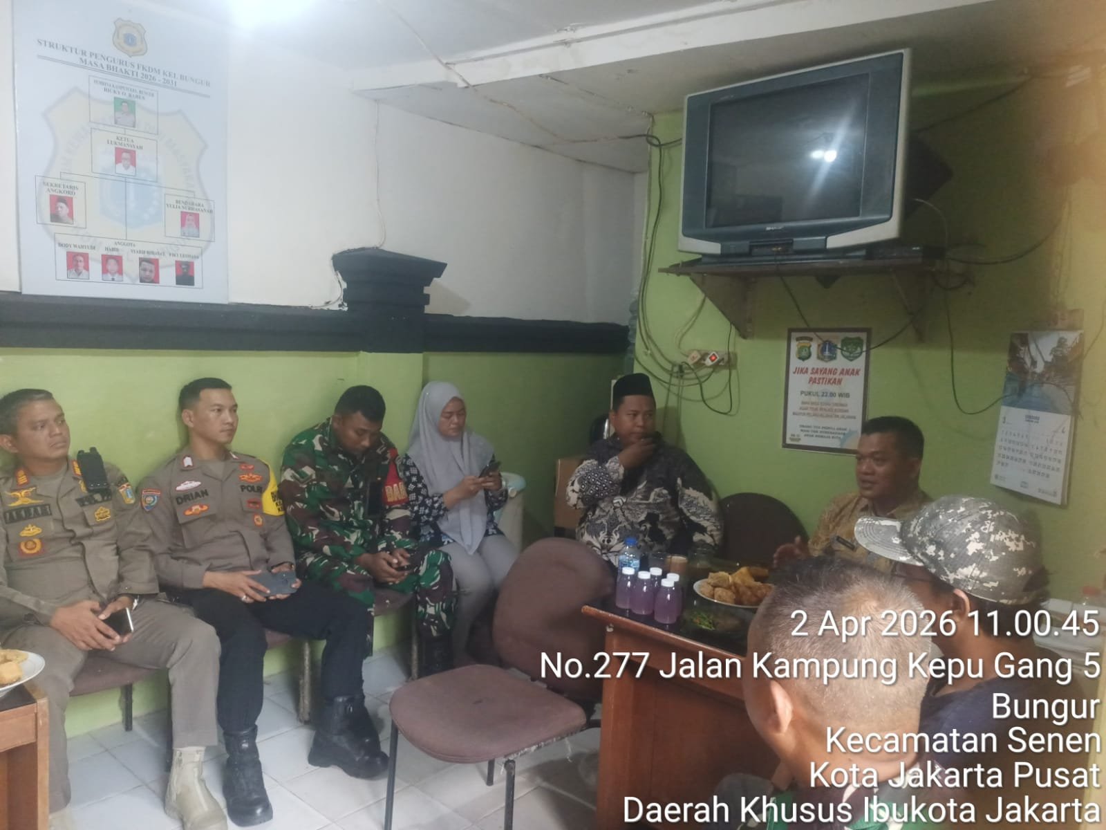 Jakarta – Unsur Tiga Pilar bersama Forum Kewaspadaan Dini Masyarakat (FKDM) Kelurahan Bungur menggelar rapat koordinasi dan evaluasi situasi keamanan dan ketertiban masyarakat (kamtibmas), Kamis (2/4/2026).