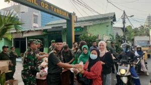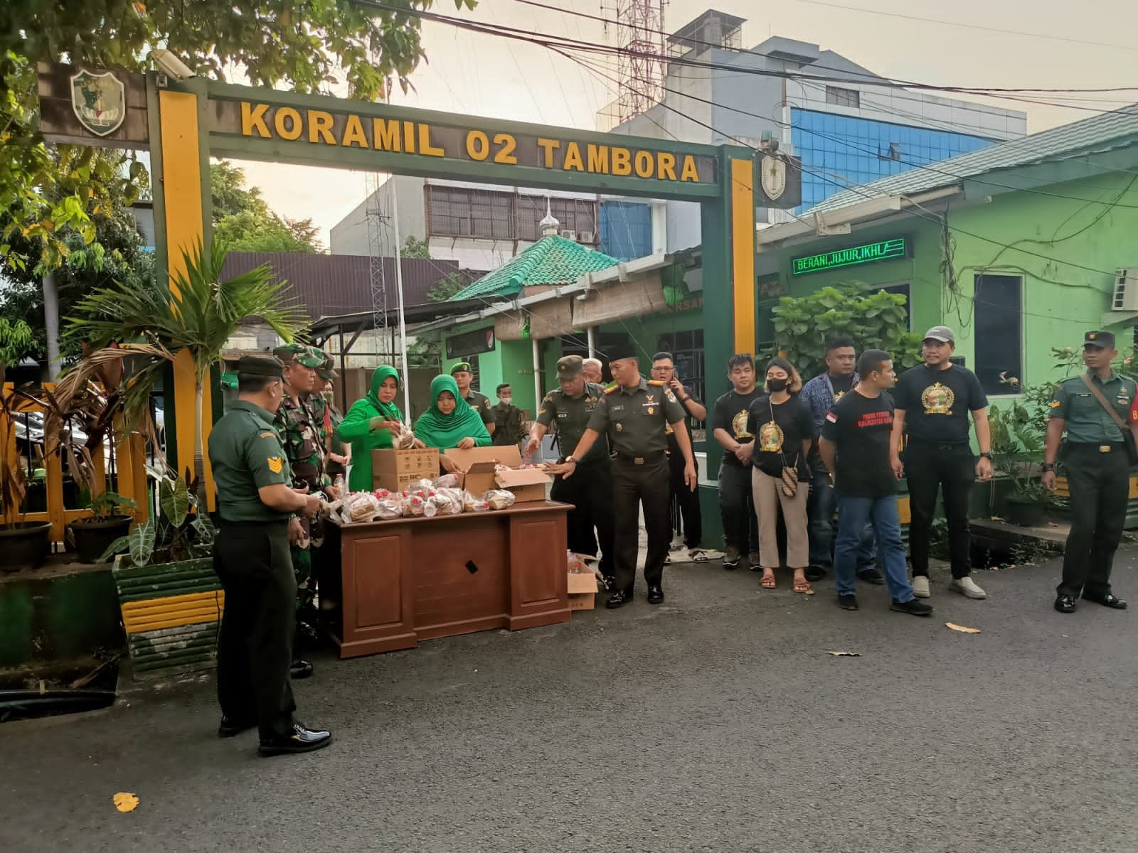Kodam Jaya Jakarta -Anggota Koramil 02/TB dan Anggota Persit Kartika Candra Kirana Ranting III Koramil 02 Tambora Cabang XVII Kodim 0503 Koorcab Rem 052 PD Jaya melaksanakan pembagian Takjil gratis sebanyak 200 paket kepada warga masyarakat yang melintas untuk berbuka puasa