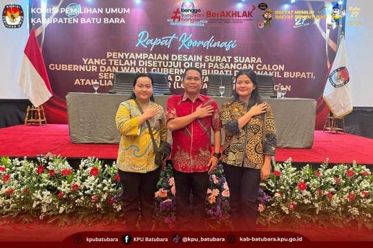 Komisi Pemilihan Umum (KPU) Kabupaten Batu Bara mengikuti kegiatan rapat koordinasi penyampaian desain surat suara yang telah disetujui oleh pasanagn calon gubernur dan wakil gubernur, bupati dan wakil bupati dan walikota dan wakil walikota atau liasion officer (LO) atau Tim Pemenangan, di Jakarta 28 September sampai 03 Oktober 2024.