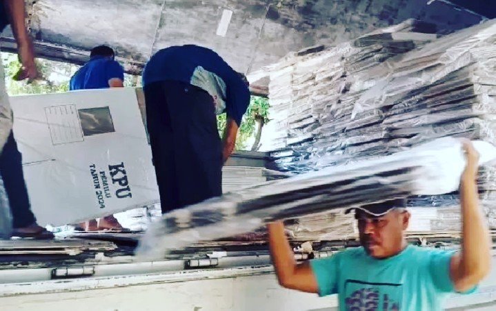 Pantauan dilapangan, sejumlah logistik yang dikirim KPU RI diantar menggunakan truk kontainer. Penurunan logistik juga disaksikan langsung oleh Badan Pengawas Pemilu (Bawaslu) Kabupaten Purwakarta.