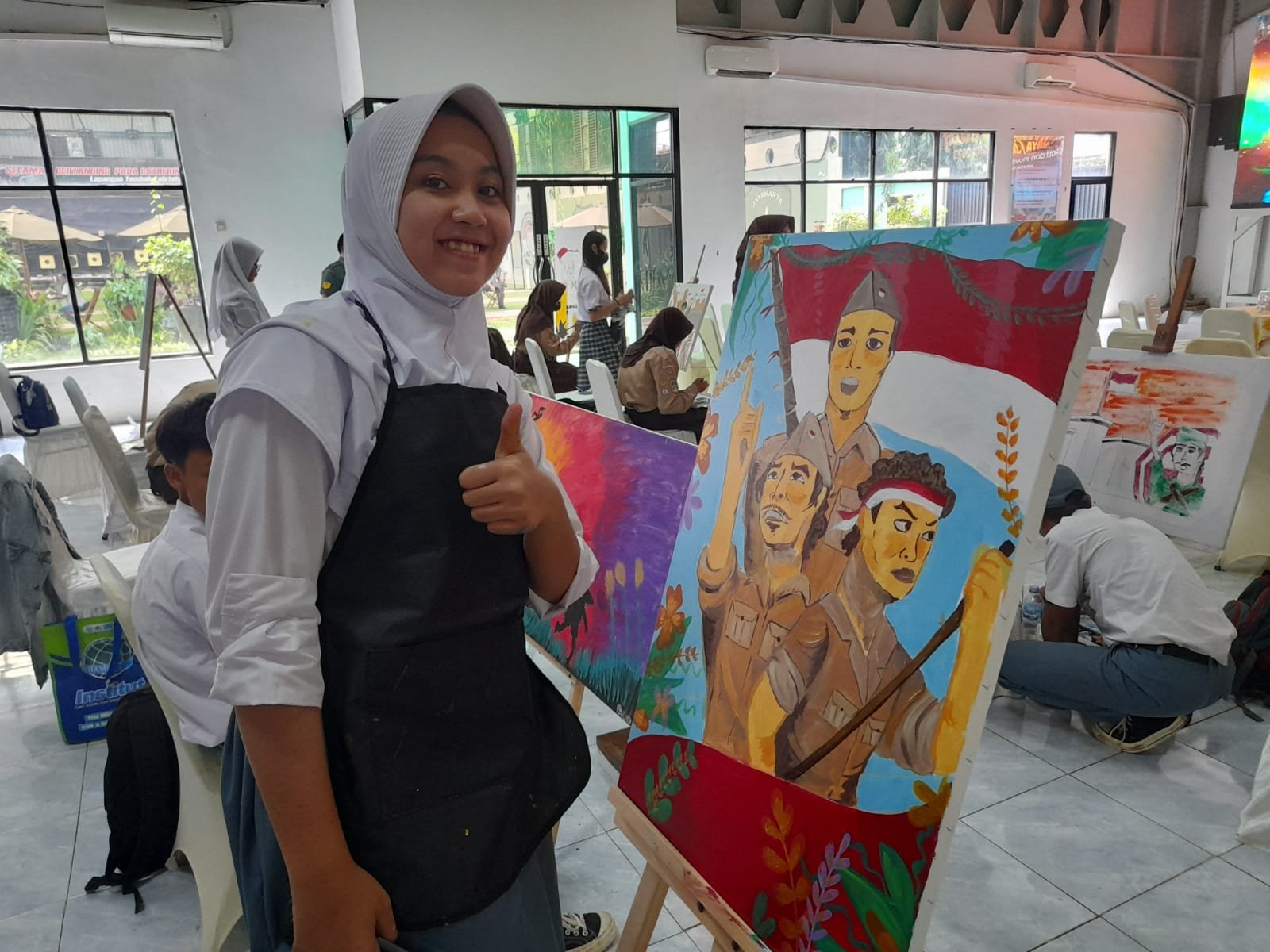 kreatifitas dan wawasan dari Siswi Kalila Permata Firdaus dalam memaknai hari Pahlawan 10 November 2023 dengan tema “Semangat Pahlawan Untuk Masa Depan Bangsa Dalam Memerangi Kemiskinan dan Kebodohan” mendapat perhatian khusus dari para juri perlombaan, sehingga berhak mendapat peringkat juara 1. Lukisan dengan objek seorang Pahlawan yang sedang memegang bambu runcing serta membawa bendera merah putih.
