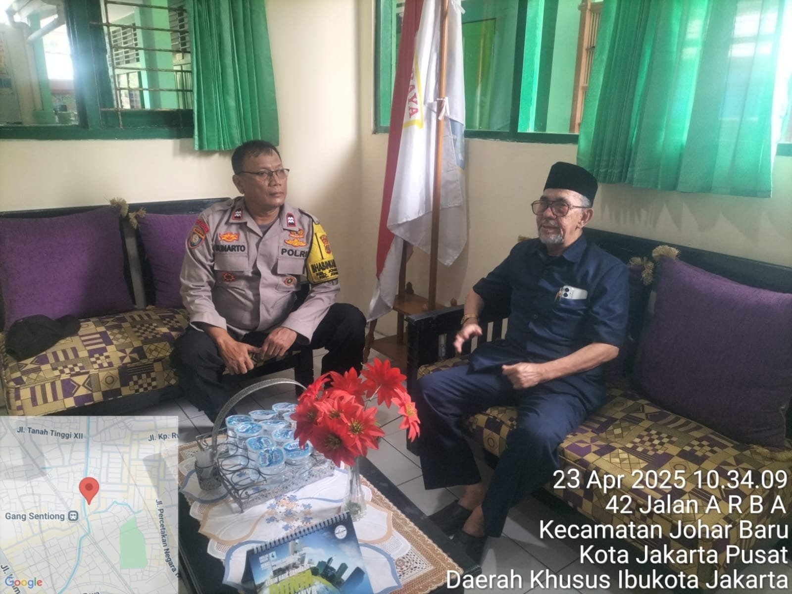 refubliknews.com, || Jakarta Pusat – Pada hari Rabu, 23 April 2025, pukul 11.30 WIB, Aiptu Sunarto, Bhabinkamtibmas Kelurahan Johar Baru, melaksanakan kunjungan dan silahturahmi ke Sekolah SMP dan SMA Al-Jihad yang terletak di Jalan Kramat Jaya RW 01, Kelurahan Johar Baru, Jakarta Pusat. Kegiatan ini bertujuan untuk menjalin hubungan yang lebih baik antara kepolisian dan pihak sekolah serta memastikan terciptanya keamanan dan ketertiban di lingkungan sekolah.