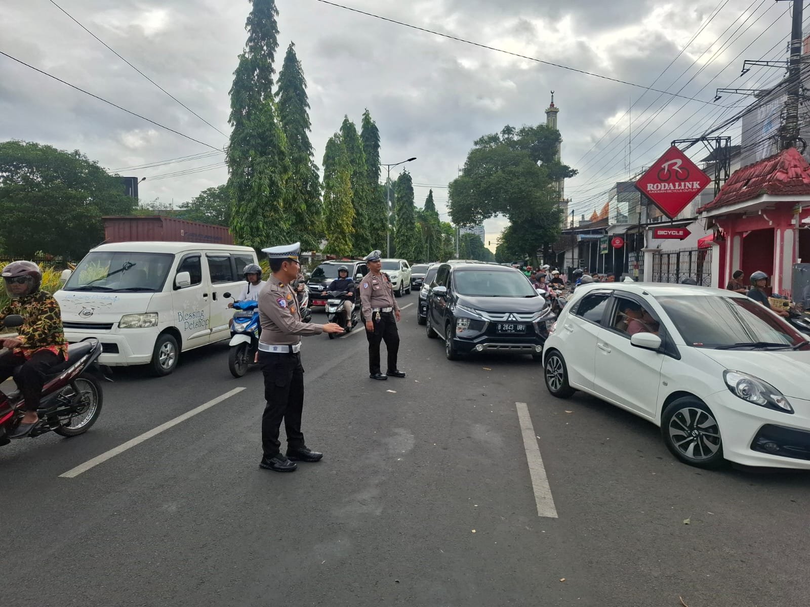 Meski padat, lalu lintas tetap bisa jalan pelan-pelan dan tertib berkat pengaturan dari petugas.
