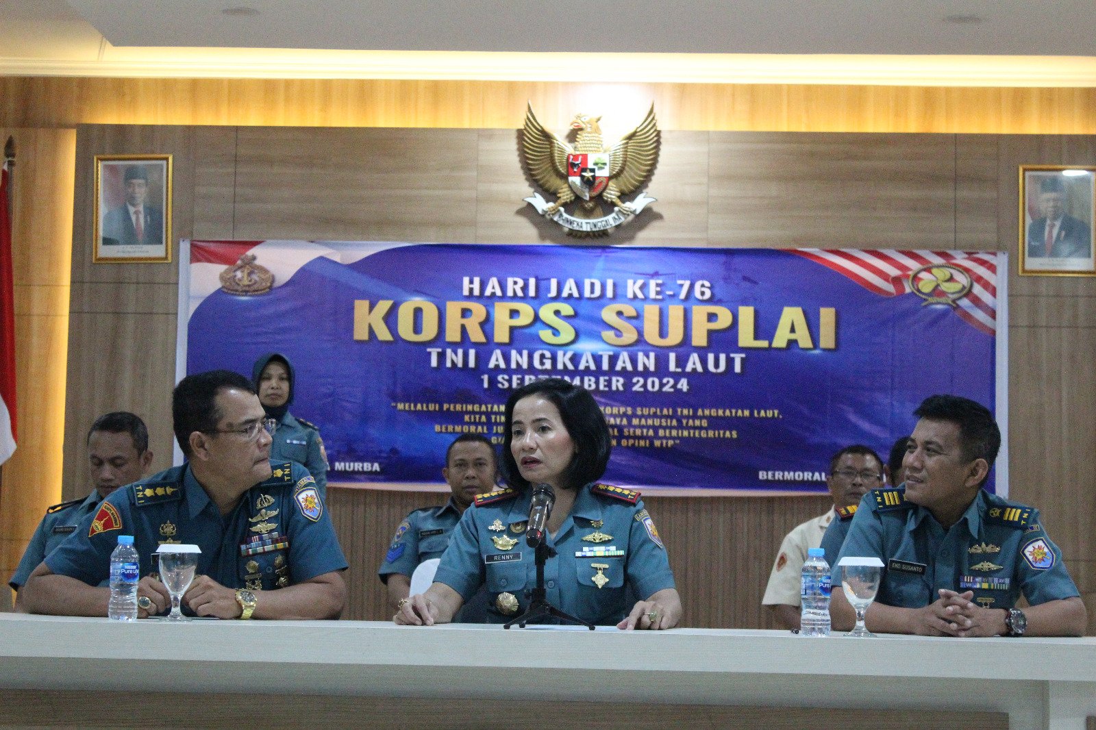 refubliknews.com, – TNI AL, Bandung,– Komandan Lanal Bandung Kolonel Laut (KH/W) Dr. Renny Setiowati, S.T., M.Sc., M.Tr.Hanla., memimpin acara Syukuran HUT Ke-76 Korps Suplai TNI AL Tahun 2024 dengan tema “Melalui Peringatan Hari Jadi Ke-76 Korps Suplai TNI Angkatan Laut, Kita Tingkatkan Sumber Daya Manusia Yang Bermoral, Jujur dan Profesional serta Berintegritas Guna Mempertahankan Opini WTP”, bertempat di Aula Mako Lanal Bandung Kamis (05/09/2024). Kegiatan tersebut dihadiri seluruh Perwira, Bintara, Tamtama serta PNS Lanal Bandung Korps Suplai.