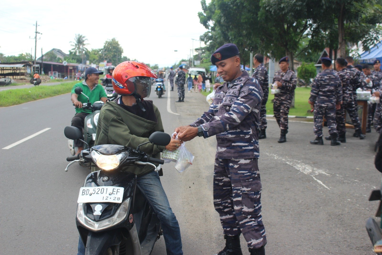 refubliknews.com, – TNI AL, Bengkulu,- Personel Pangkalan TNI Angkatan Laut (Lanal) Bengkulu kembali melakukan aksi bakti sosial berbagi takjil buka puasa kepada masyarakat yang melintas di depan Mako Lanal Bengkulu, Jalan RE. Martadinata No. 10 Kota Bengkulu, Kamis (13/03/2025).