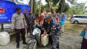 TNI AL, Bengkulu,- Pangkalan TNI Angkatan Laut (Lanal) Bengkulu menyalurkan air bersih kepada Masyarakat Pesisir Binaan Babinpotmar bekerjasama dengan Pemda Bengkulu Tengah dan Perumda Tirta Rafflesia, di Desa Pondok Kelapa, Kecamatan Pondok Kelapa, Kabupaten Bengkulu Tengah, Jumat (20/10/2023).