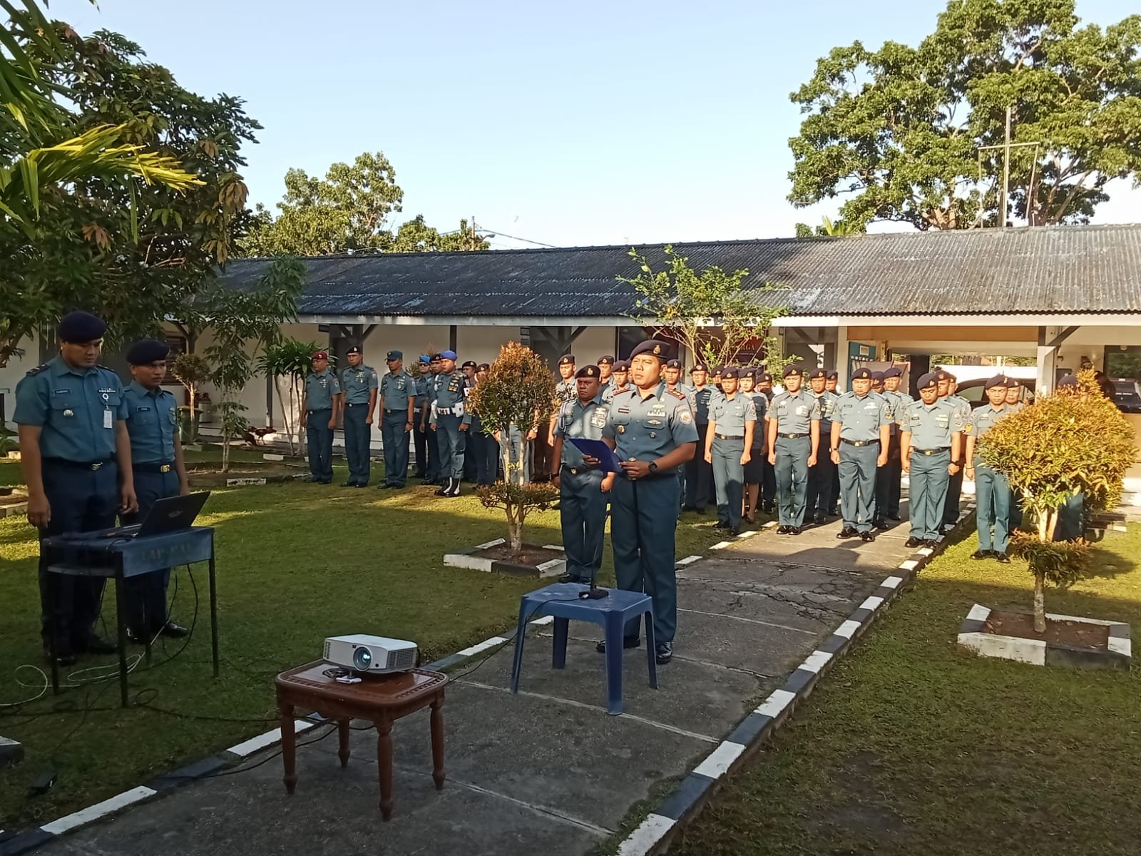 TNI AL, Bintan,- Komandan Lanal Bintan Letkol Laut (P) Gita Muharam, M.Sc., beserta Perwira Staf dan Parajurit Lanal Bintan mengikuti Apel Khusus dengan Danlantamal IV Batam yang dilakukan secara virtual dari Lapangan Apel Mako Lantamal IV, bertempat di Halaman Apel Mako Lanal Bintan, Senin (05/06/2023).