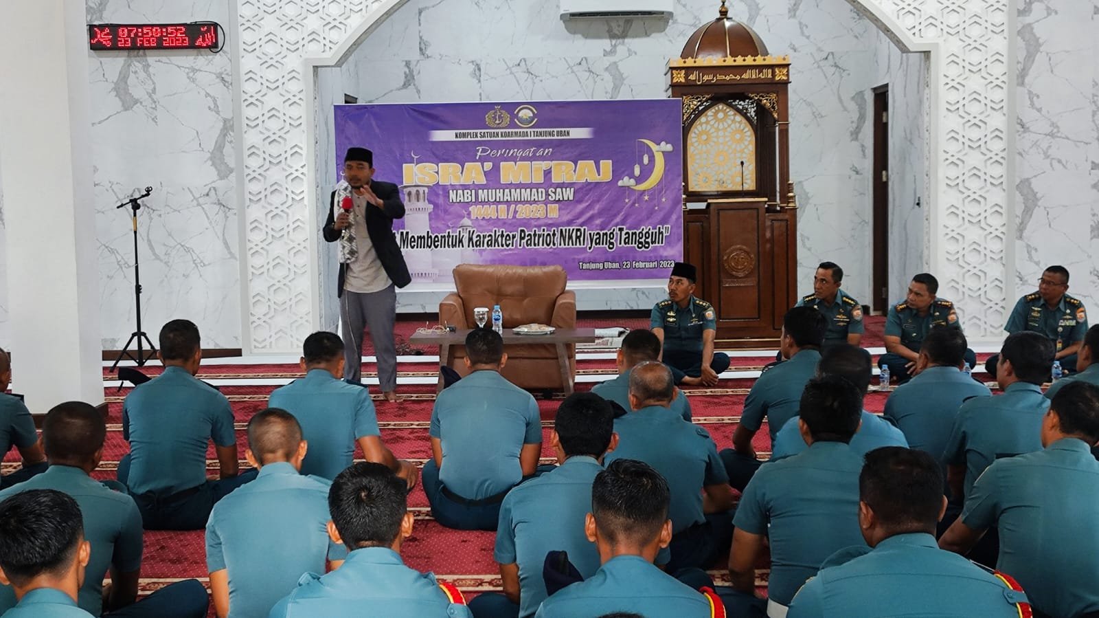 TNI AL, Bintan,- Pangkalan TNI Angkatan Laut Bintan melaksanakan Peringatan Isra Mi’raj Nabi Muhammad SAW Tahun 1444 H/2023 M yang diikuti perwakilan Satuan TNI AL yang ada di Tanjung Uban, bertempat di Masjid Al Ihsan, Komplek Satuan Koarmada I, Tanjung Uban, Kamis (23/02/2023).