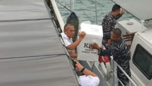 TNI AL, Dabo Singkep,- Pengangkutan logistik Pemilu Tahun 2024 di Kabupaten Lingga dimulai dari gudang penyimpanan KPU menuju Dermaga Penarik. Logistik-logistik pemilu ini kemudian diangkut menggunakan kapal Patroli Keamanan Laut (Patkamla) Tanjung Buku Lanal Dabo Singkep menuju ke KRI Beladau-643 yang sandar di Dermaga Jagoh, Senin (12/02/2024).