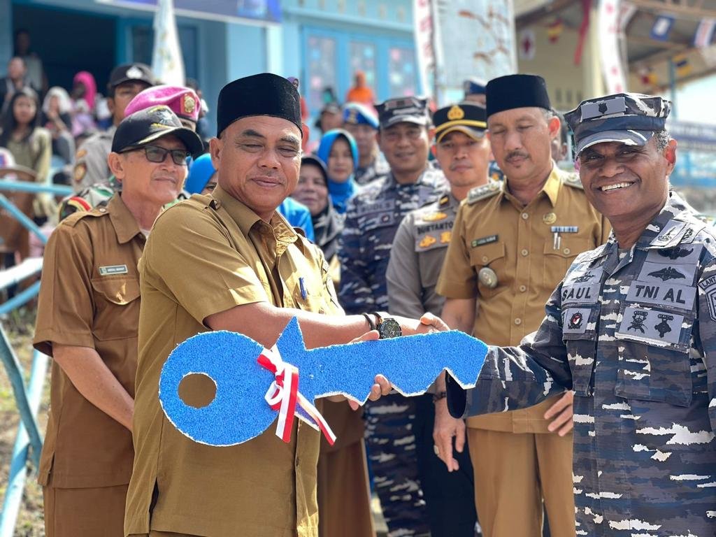 TNI AL, Dabo Singkep,- Komandan Pangkalan TNI Angkatan Laut Dabo Singkep (Danlanal DBS) Letkol Laut (P) Tri Hermawan M.A, M.Tr. Opsla., yang diwakili oleh Palaksa Lanal DBS Mayor Marinir Saul Jamlaay meresmikan Kampung Bahari Nusantara (KBN) TNI AL TA. 2023 yang berlokasi di Dusun III Pulau Lipan, Desa Penuba, Kecamatan Selayar, Kabupaten Lingga, Provinsi Kepulauan Riau, Senin (04/12/2023).