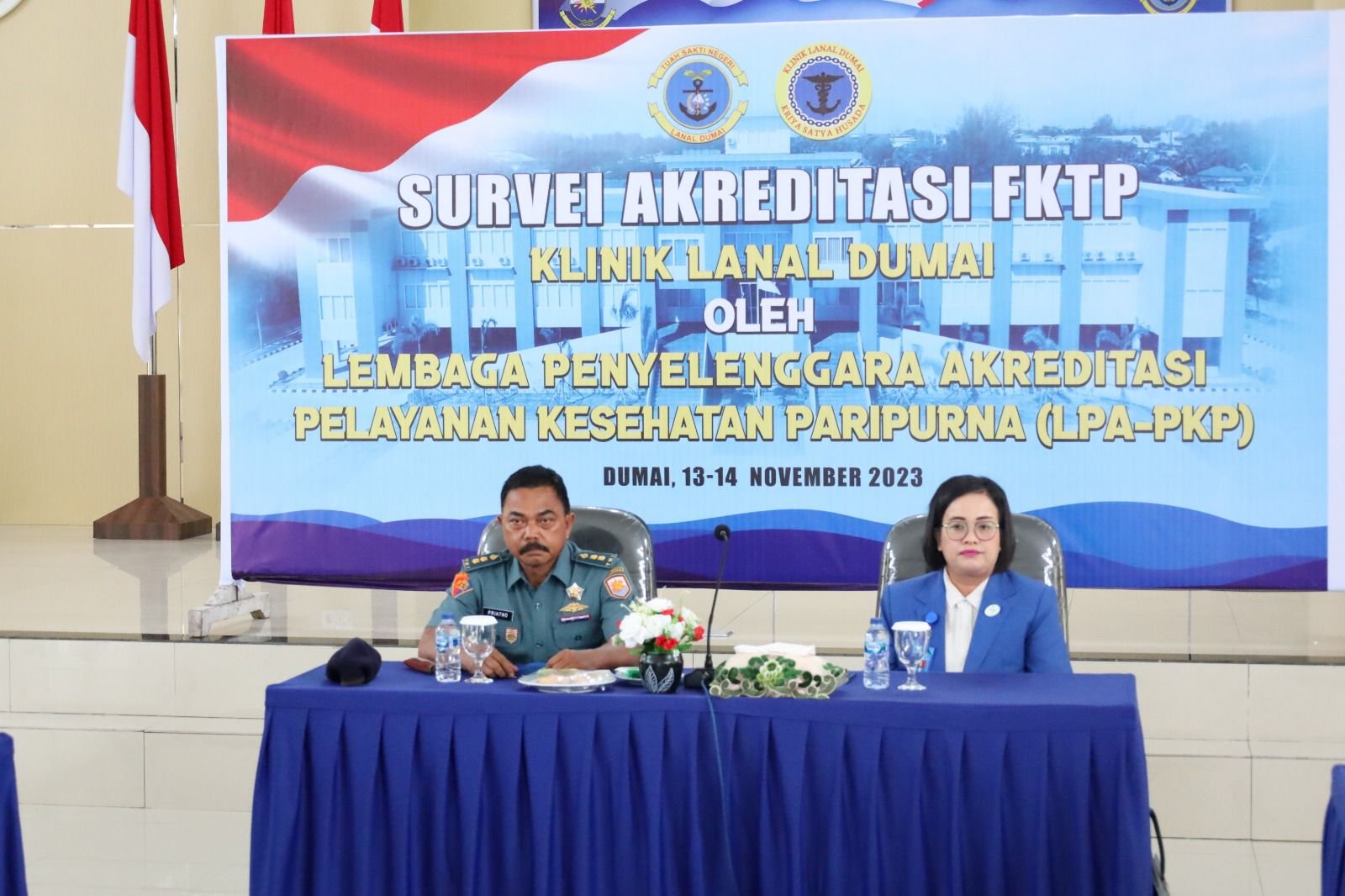 TNI AL, Dumai,- Komandan Lanal Dumai diwakili oleh Palaksa Letkol Laut (PM) Priatno, S.H., M.H., membuka Survei Akreditasi Balai Pengobatan Lanal Dumai oleh Lembaga Penyelenggara Akreditasi Pelayanan Kesehatan Paripurna (LPA-PKP) di Mako Lanal Dumai, Jalan Yos Sudarso, Kelurahan Buluh Kasap, Kecamatan Dumai Timur, Kota Dumai, Senin (13/11/2023).
