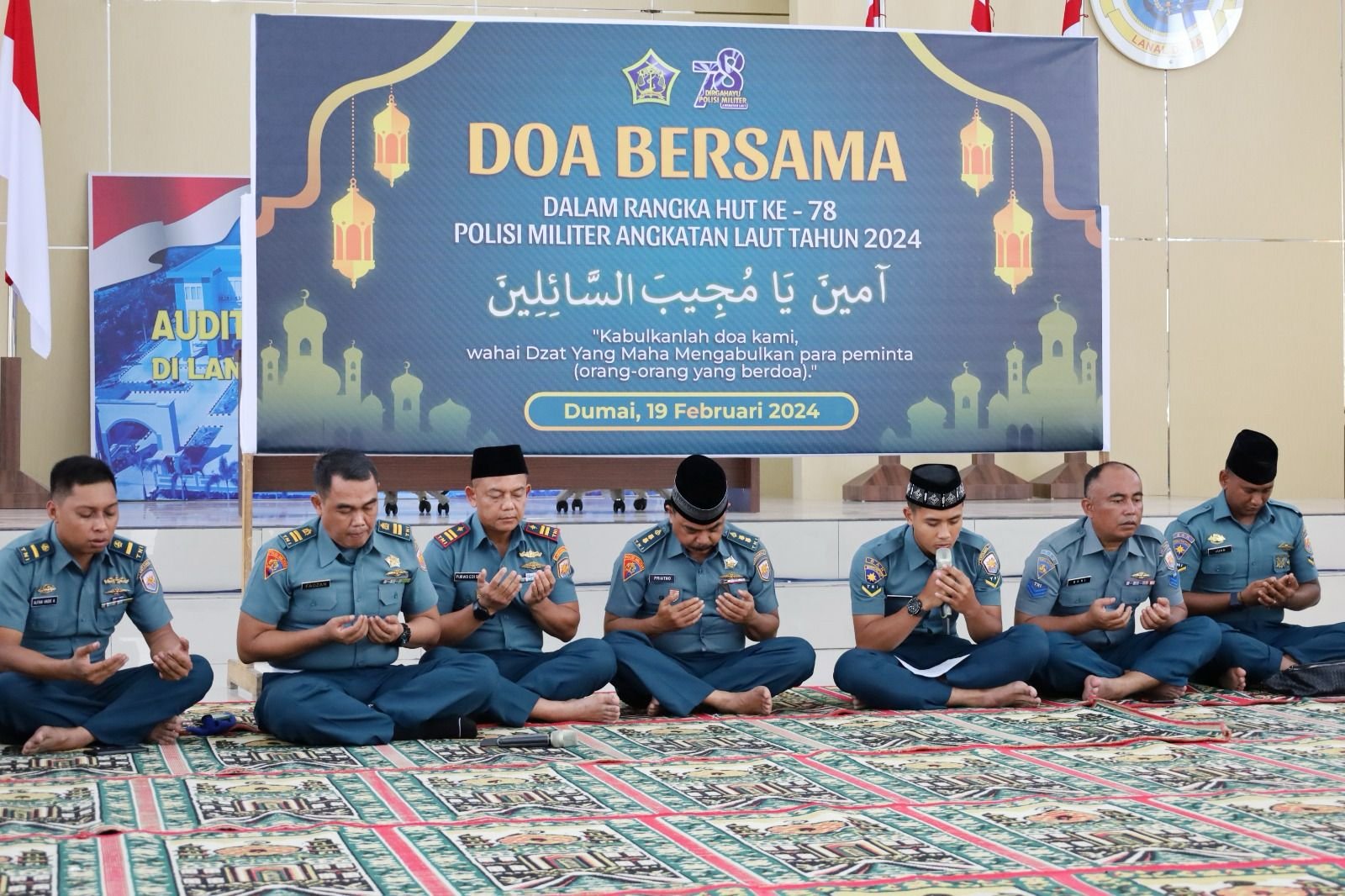 Personel Lanal Dumai yang beragama Islam, kegiatan doa bersama dipimpin oleh Palaksa Letkol Laut (PM) Priatno, S.H., M.H., di Gedung Wijaya Kusuma dan yang beragama Kristen dipimpin oleh Paspotmar Mayor Laut (PM) Efendi Samosir di Ruang Rapat Mako Lanal Dumai, Jalan Yos Soedarso, No. 1 Kota Dumai.