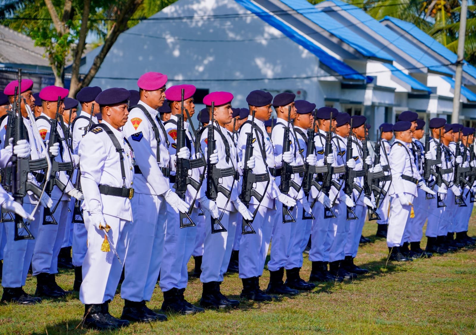 Prajurit Lanal Lhokseumawe melaksanakan Upacara Memperingati HUT TNI Angkatan Laut Ke-78, bertempat di Lapangan Upacara Mako Lanal Lhokseumawe, Jalan KKA, Desa Paloh Igeuh, Kecamatan Dewantara, Kabupaten Aceh Utara, Senin (11/09/2023).
