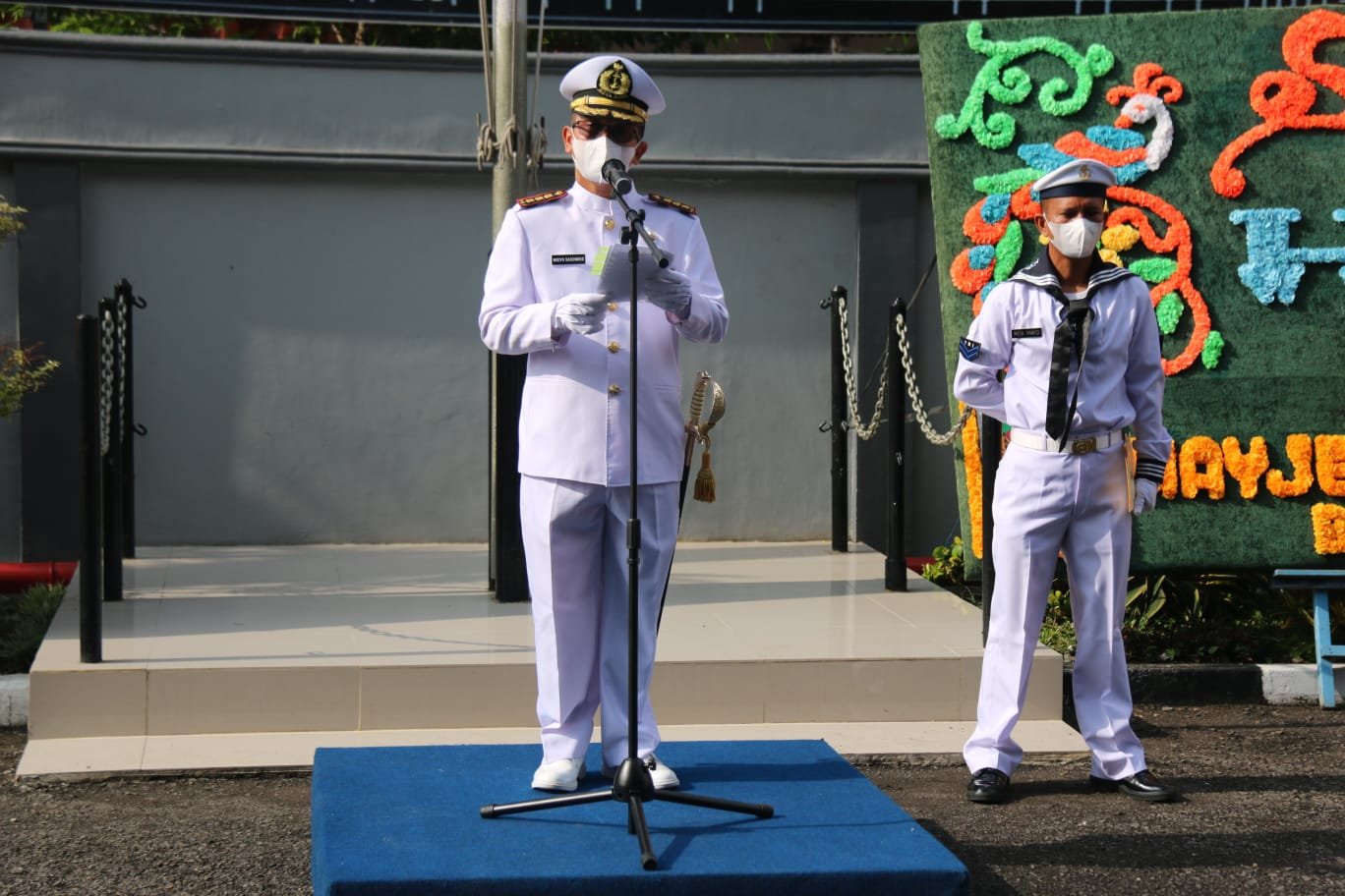 Bertindak sebagai Irup Komandan Lanal Palembang Kolonel Laut (P) Widyo Sasongko, S.E., M.Tr. Hanla., membacakan Amanat Kepala Staf TNI Angkatan Laut Laksamana TNI Yudo Margono yang berisikan antara lain, “Sejarah pengabdian TNI AL pada Negara Kesatuan Republik Indonesia telah terukir dengan tinta emas sejak lahir bangsa ini, 77 tahun silam. Selama itu pula, TNI AL selalu hadir dalam upaya menjaga kedaulatan dan mempertahankan keutuhan bangsa dan negara sebagai jaminan keselamatan dan kelangsungan hidup bangsa Indonesia.”