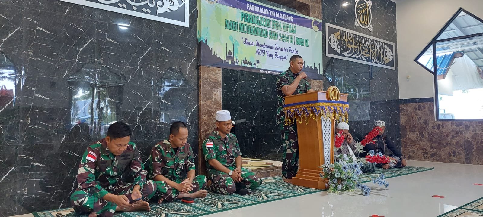 TNI AL, Sabang,- Keluarga Besar Lanal Sabang memperingati Isra Mi’raj Nabi Muhammad SAW 1444 Hijriah/2023 Masehi dengan tema “Shalat membentuk karakter patriot NKRI yang tangguh”, bertempat di Masjid Ar Rahman Lanal Sabang, Jalan Yos Sudarso, Gampong Kuta Ateuh, Kecamatan Sukakarya, Kota Sabang, Selasa (21/2/2023).