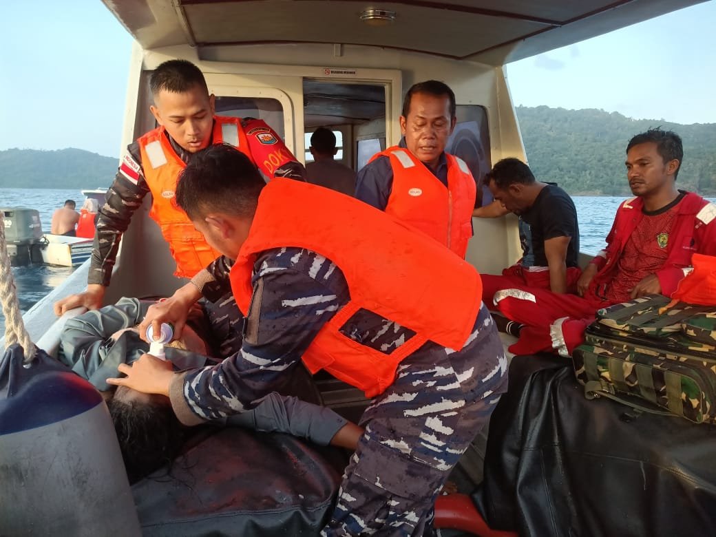 Sementara itu, Kepala Balai Pengobatan Lanal Tarempa bersama Bakes berjibaku melaksanakan penanganan pertama dari proses evakuasi korban di laut hingga dievakuai ke RSUD Tarempa.